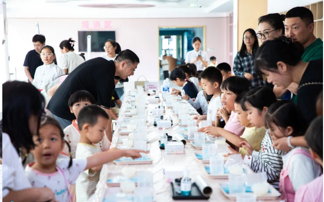 隨后,家長與孩子們在海藻健康舫共同制作了海藻手工皂。這一過程不僅讓孩子們體驗到了動手創(chuàng)造的樂趣,更讓他們深刻理解了健康、環(huán)保的生活理念,進一步加深了家庭成員之間的情感紐帶。許多家長表示:“這是第一次了解到海藻科學,感受到科技的魅力與教育的意義。感謝工會及明月為我們提供了這樣一個難得的機會,也讓我們對海洋強國更有信心、更有底氣?!?