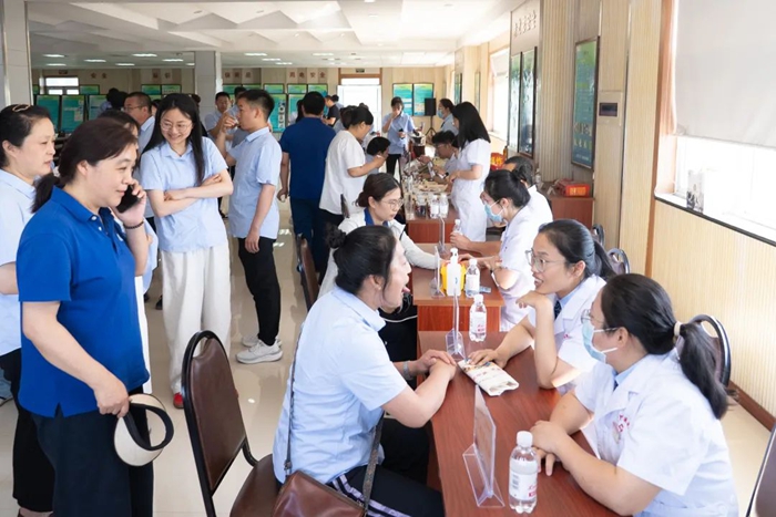 現(xiàn)場精心設(shè)置了眾多體驗區(qū)域,成為員工們爭相打卡的“健康驛站”。耳穴壓豆、刮痧、拔罐等中醫(yī)特色療法體驗區(qū)前排起長隊,大家親身感受著中醫(yī)外治法的獨特效果,緩解了頸肩腰腿的疲勞;中藥茶飲藥膳體驗則讓員工們品嘗到了“舌尖上的健康”;綜合服務(wù)中心的工作人員詳細(xì)講解著功效與制作方法;藥劑科準(zhǔn)備的常用藥材展示吸引了眾多目光,藥師現(xiàn)場教學(xué)“識草辨藥”,膏方、中藥香囊琳瑯滿目,并耐心解答著大家關(guān)于中醫(yī)理療使用的各種疑問,提供科學(xué)用藥指導(dǎo)。
