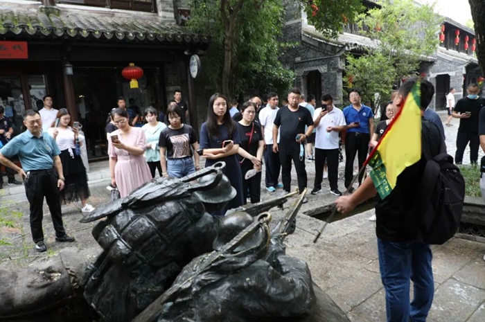 走進(jìn)臺(tái)兒莊古城,處處都是古河道、古碼頭,舟楫搖曳,水巷縱橫,當(dāng)?shù)氐拇迕裰_(tái)而居,大家立刻被濃厚的運(yùn)河文化深深吸引,先后參觀了運(yùn)河奏疏館、運(yùn)河酒文化展館、運(yùn)河漕幫鏢局博物館、藥典博物館、藻食記輕食文化館,形象直觀地了解了古運(yùn)文化的源遠(yuǎn)流長(zhǎng)和老臺(tái)兒莊的風(fēng)土人情。